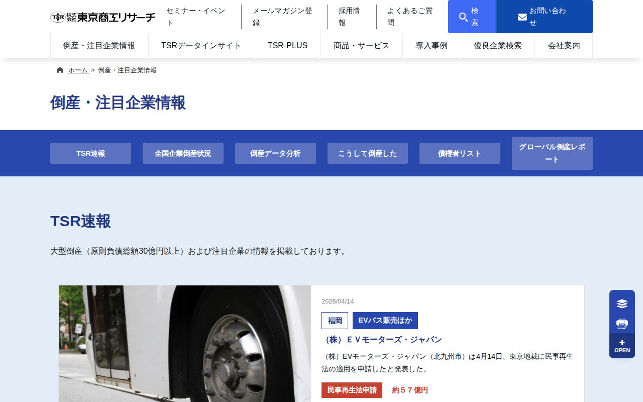 倒産・注目企業情報 | 東京商工リサーチ