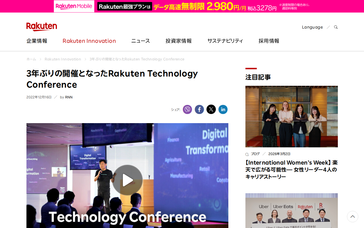 3年ぶりの開催となったRakuten Technology Conference | 楽天グループ株式会社 - 保存されたスクリーンショット