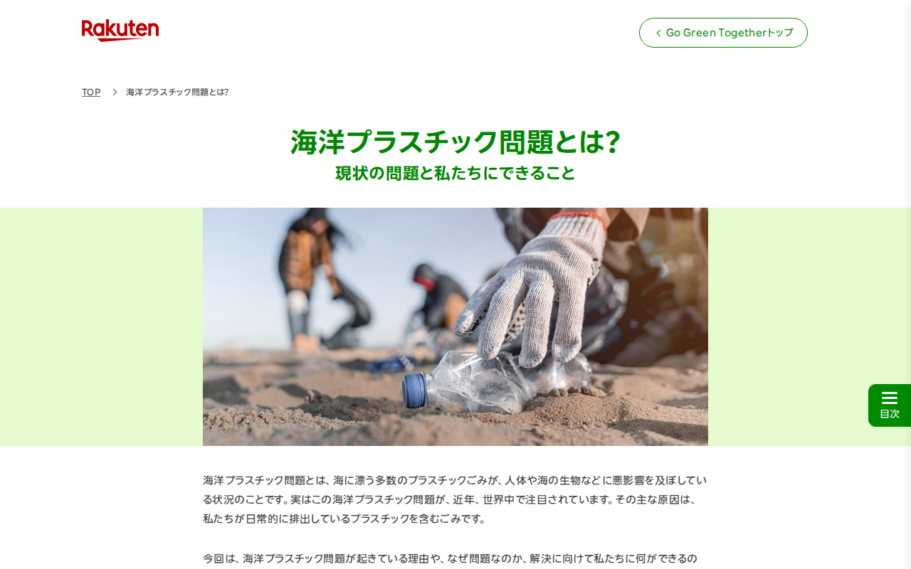 海洋プラスチック問題とは? | Go Green Together 楽天グループ株式会社 - 保存されたスクリーンショット