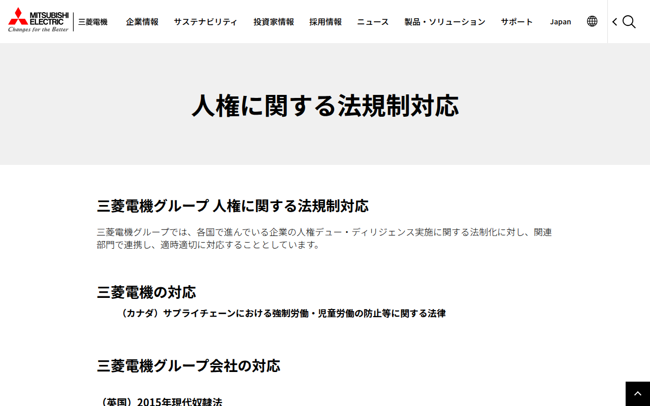 人権に関する法規制対応 | 三菱電機 Mitsubishi Electric