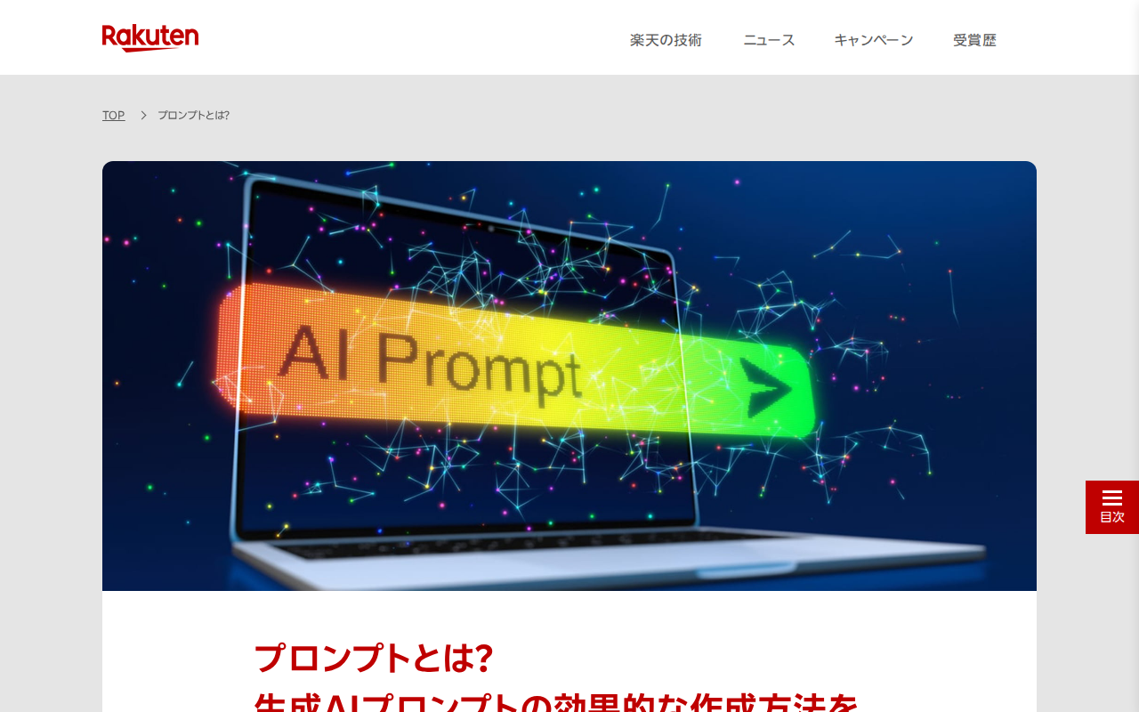 プロンプトとは?生成AIプロンプトの効果的な作成方法を紹介 | This is Rakuten Tech 楽天グループ株式会社 - 保存されたスクリーンショット