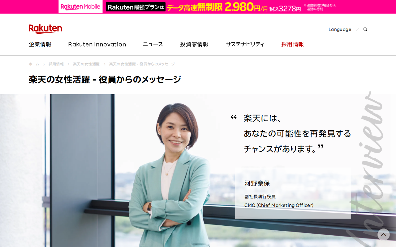 楽天の女性活躍 - 役員からのメッセージ | 楽天グループ株式会社