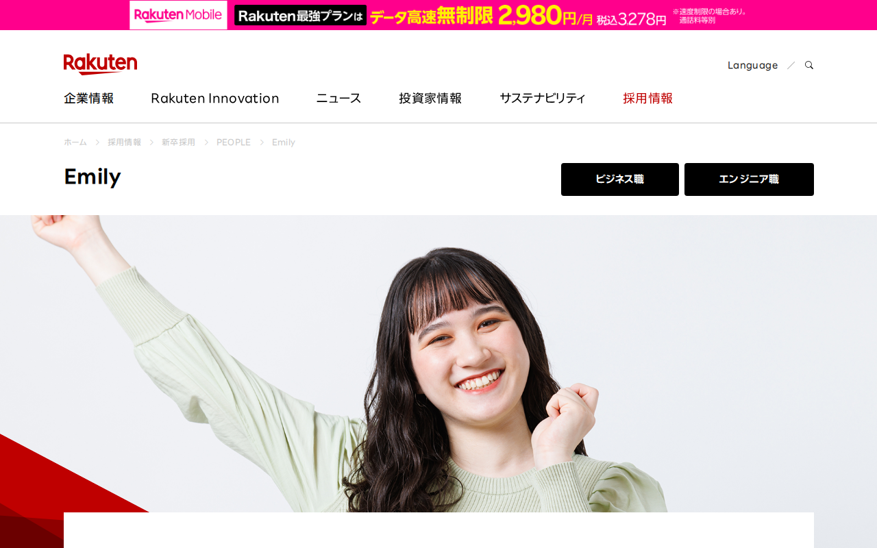 https://corp.rakuten.co.jp/careers/graduates/people/emily.htmlApril 15, 2026 at 12:50 AM JST•The archive page, viewer, and downloads use this saved version.