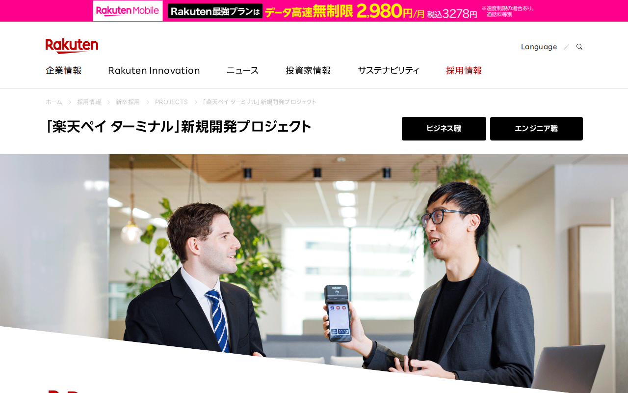 https://corp.rakuten.co.jp/careers/graduates/projects/project_pay-terminal.htmlApril 15, 2026 at 12:40 AM JST•The archive page, viewer, and downloads use this saved version.