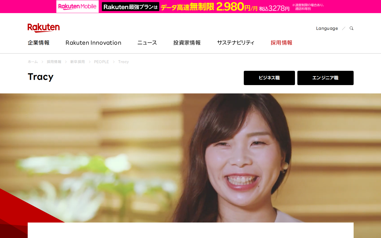 Tracy | 新卒採用 | 楽天グループ株式会社