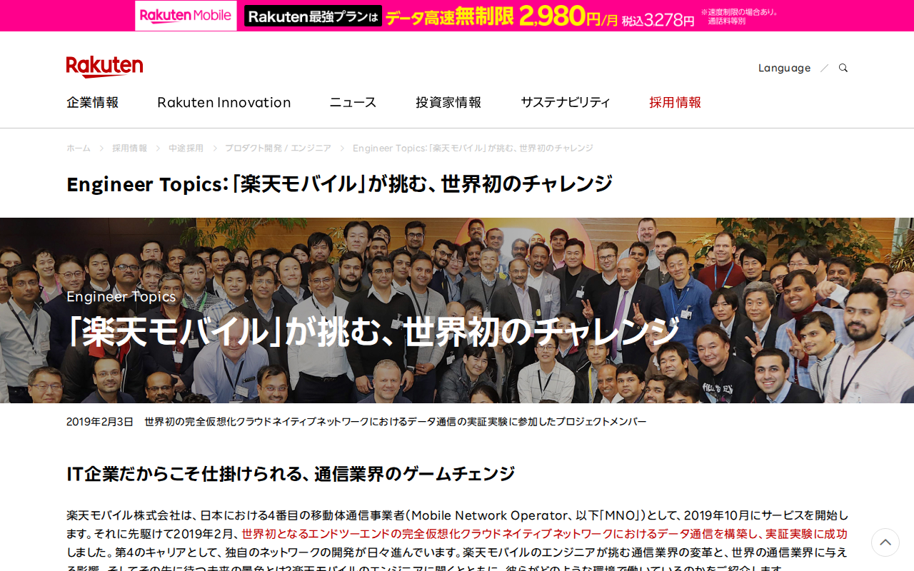 「楽天モバイル」が挑む、世界初のチャレンジ | 楽天グループ株式会社