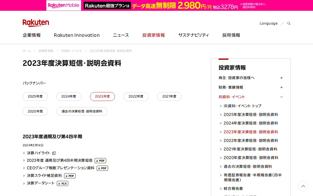 2023年度決算短信・説明会資料|楽天グループ株式会社
