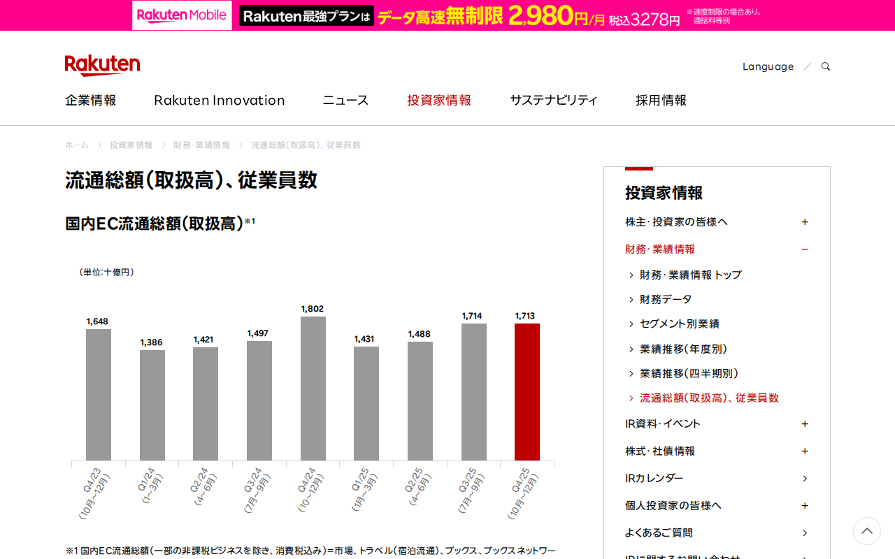 流通総額(取扱高)、従業員数|楽天グループ株式会社