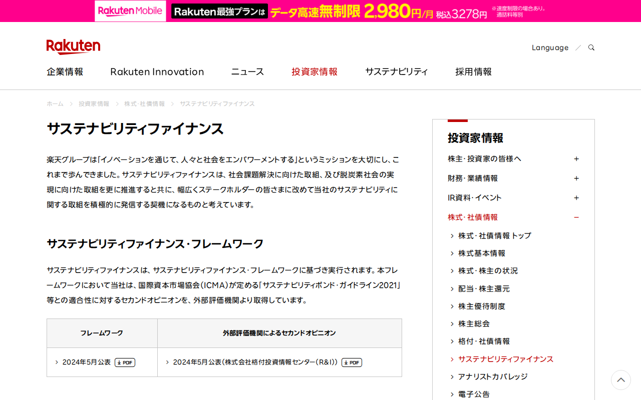 サステナビリティファイナンス|楽天グループ株式会社