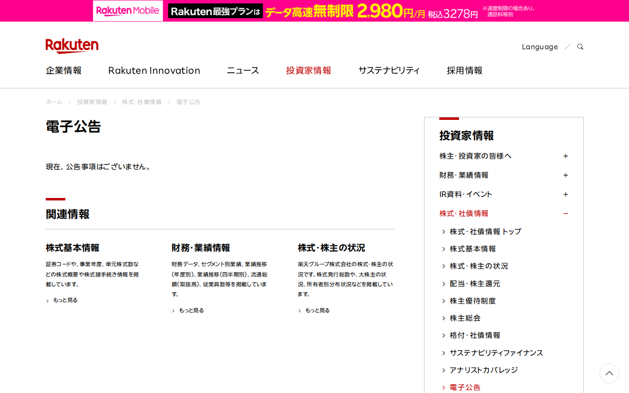 電子公告|楽天グループ株式会社