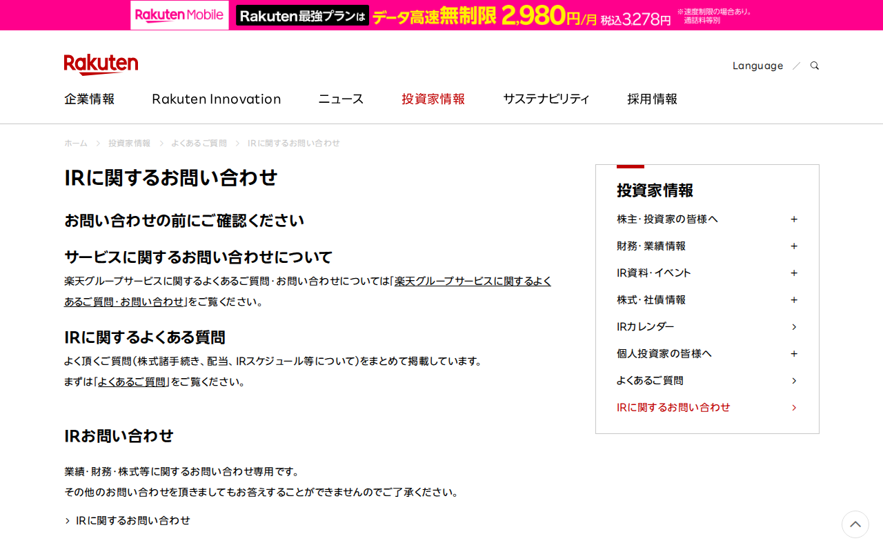 IRに関するお問い合わせ|楽天グループ株式会社