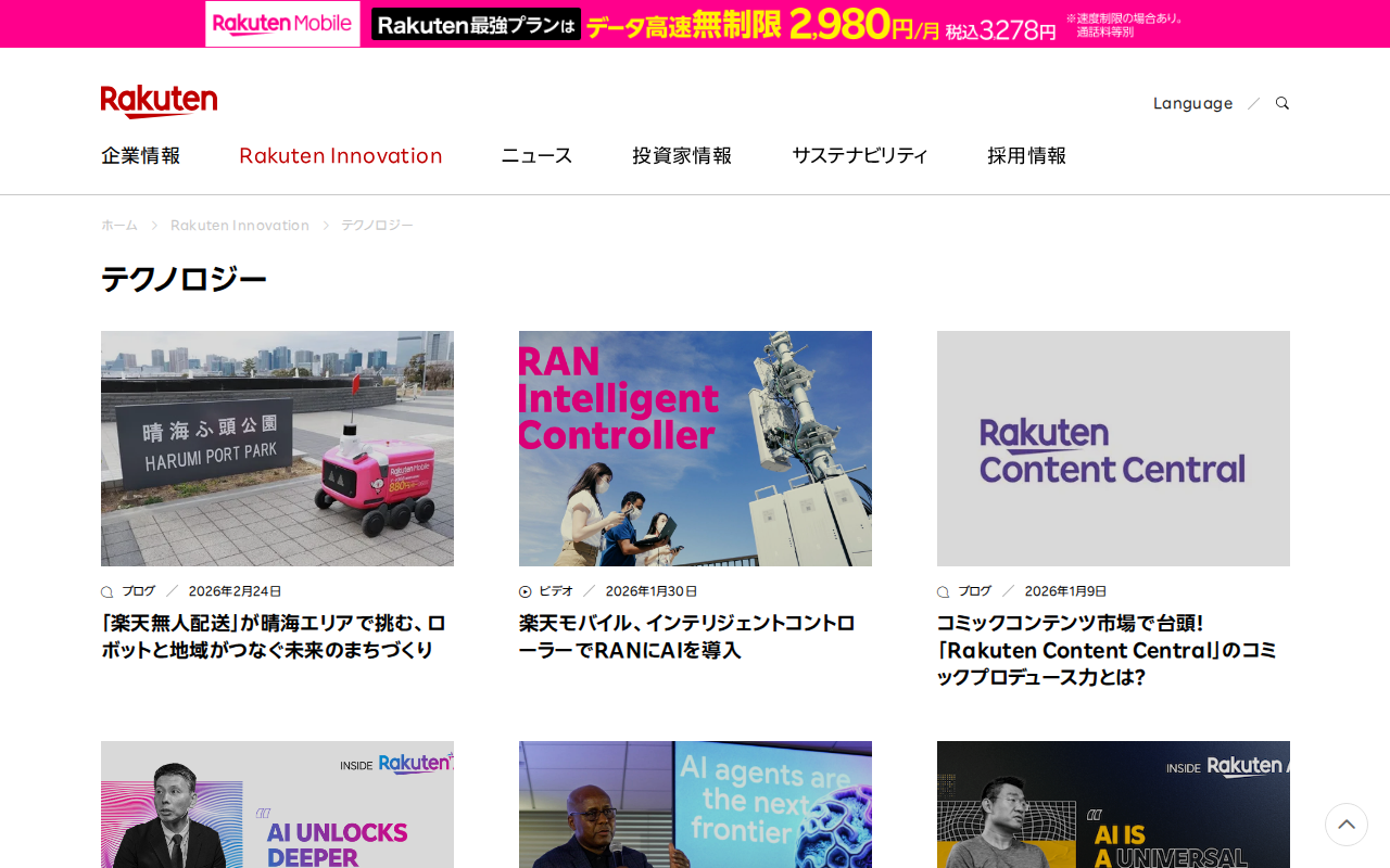 テクノロジー|Rakuten Innovation | 楽天グループ株式会社