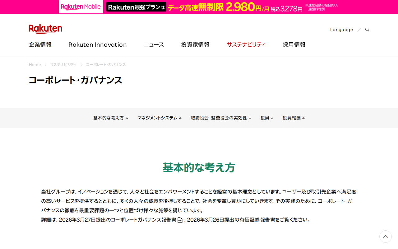 取締役会の実効性の評価結果に関する概要について | 楽天グループ株式会社