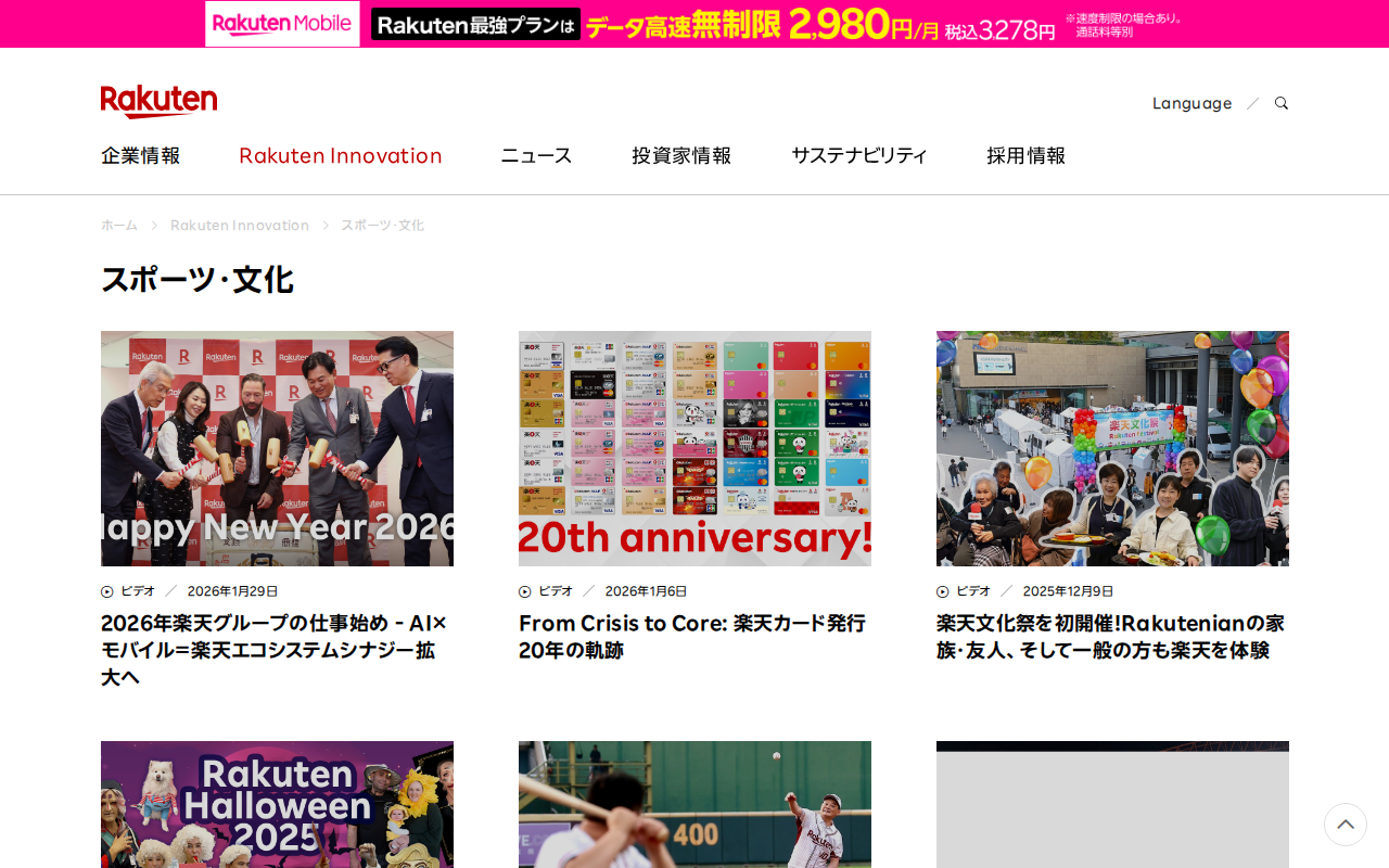 スポーツ・文化|Rakuten Innovation | 楽天グループ株式会社