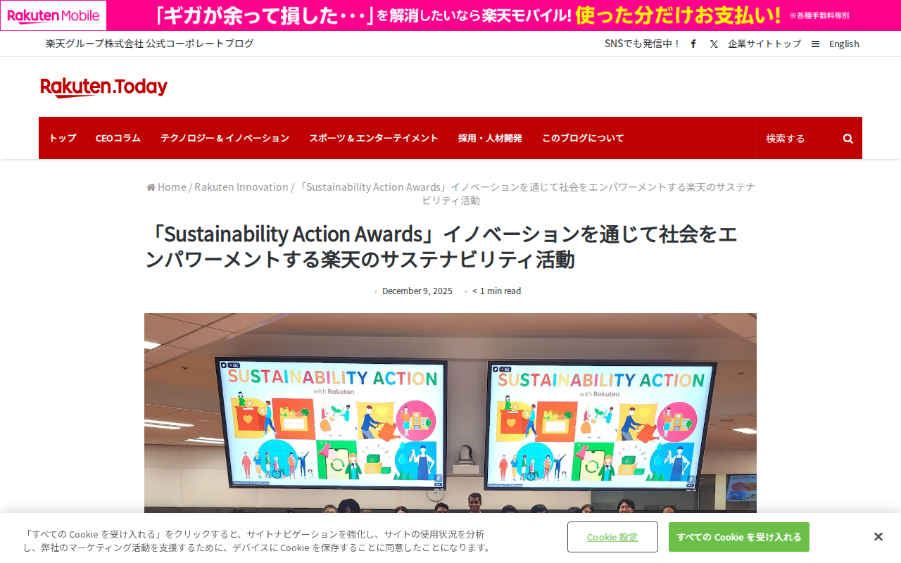 「Sustainability Action Awards」イノベーションを通じて社会をエンパワーメントする楽天のサステナビリティ活動