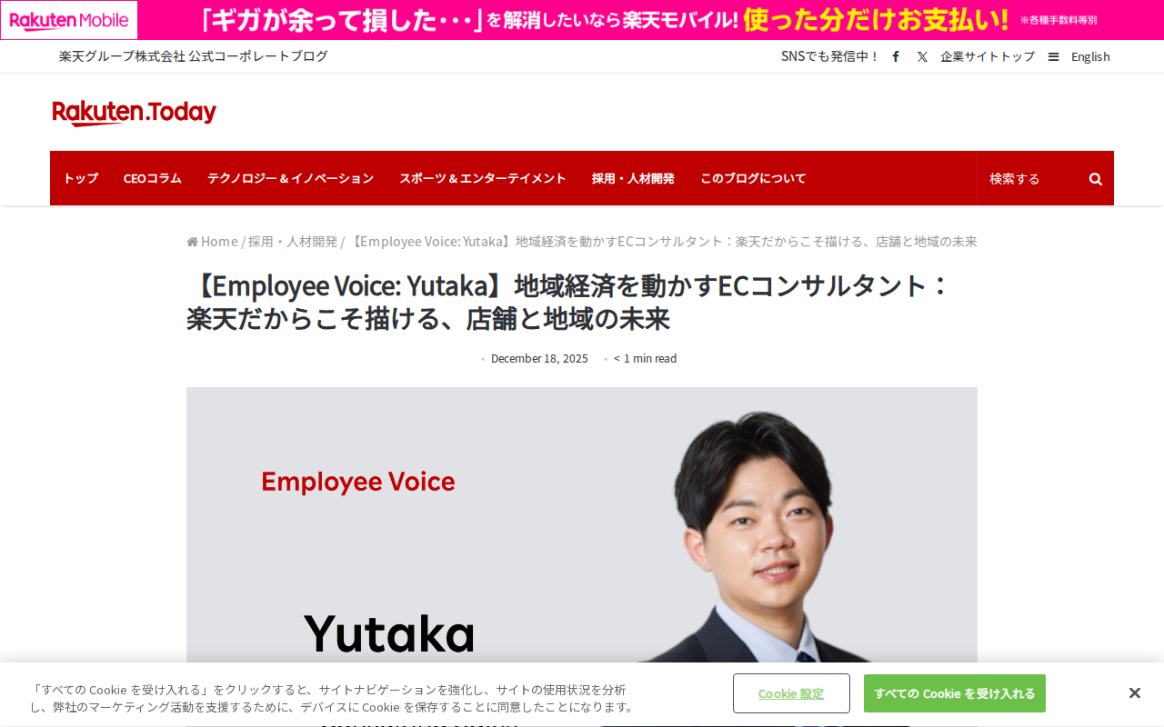 【Employee Voice: Yutaka】地域経済を動かすECコンサルタント:楽天だからこそ描ける、店舗と地域の未来