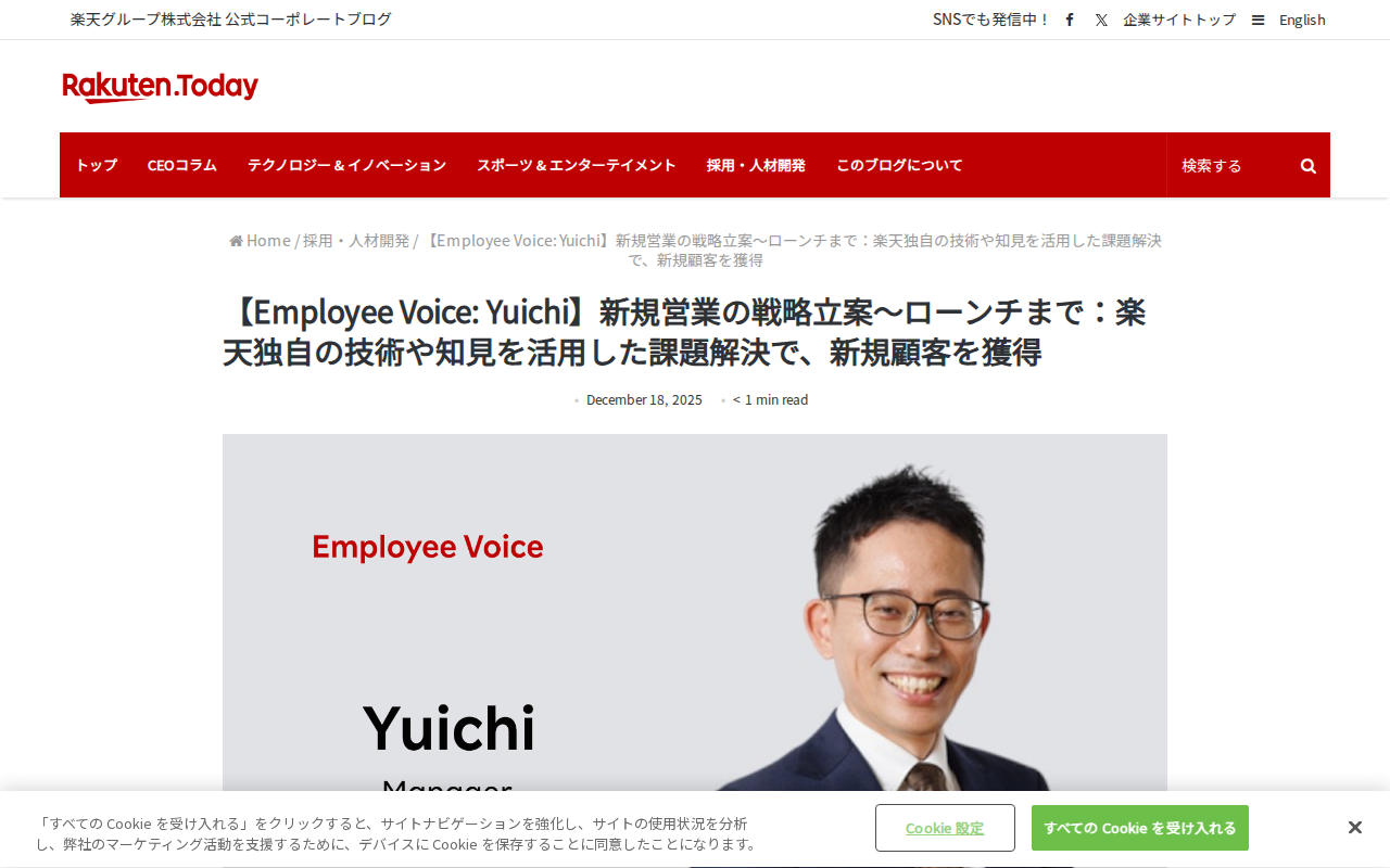 【Employee Voice: Yuichi】新規営業の戦略立案~ローンチまで:楽天独自の技術や知見を活用した課題解決で、新規顧客を獲得