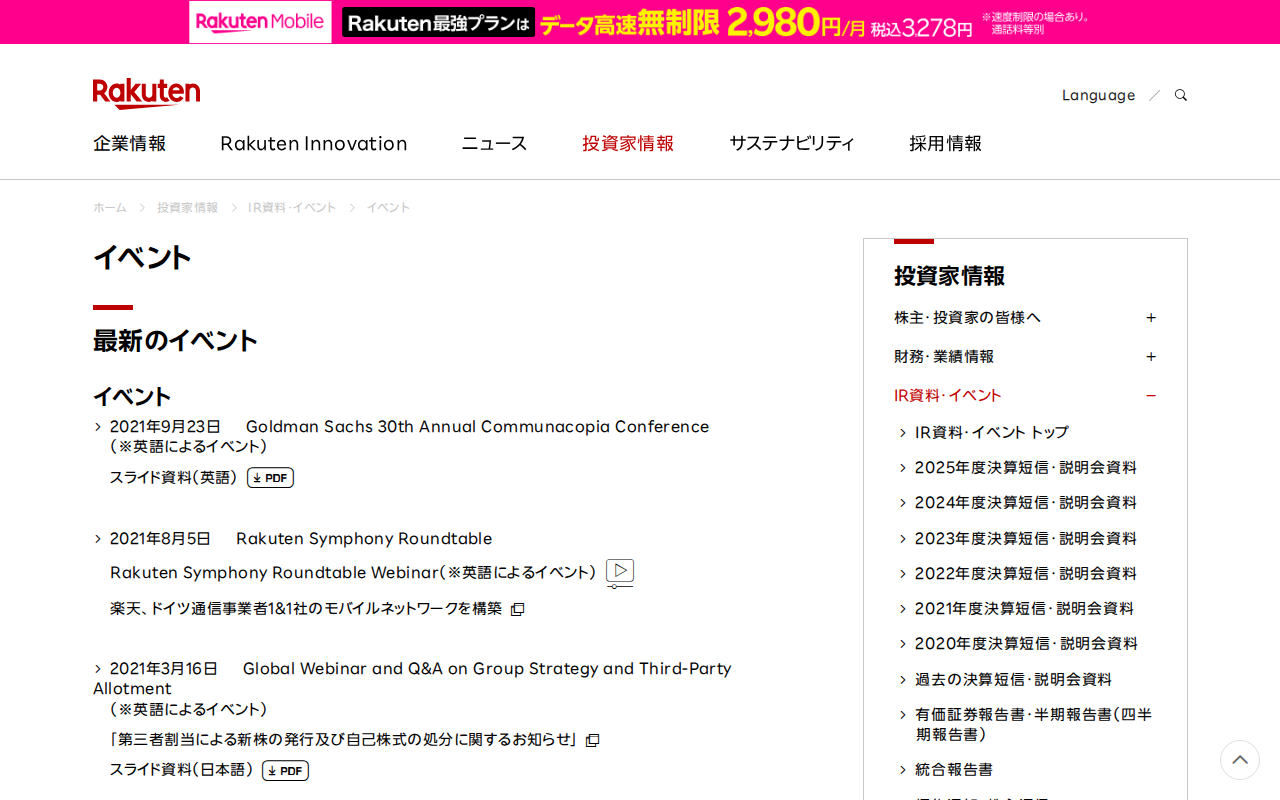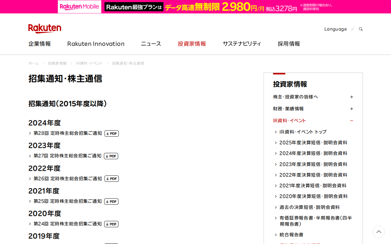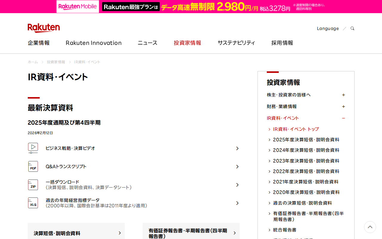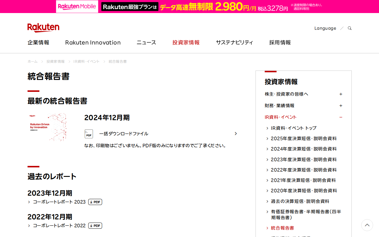 有価証券報告書・半期報告書(四半期報告書)|楽天グループ株式会社
