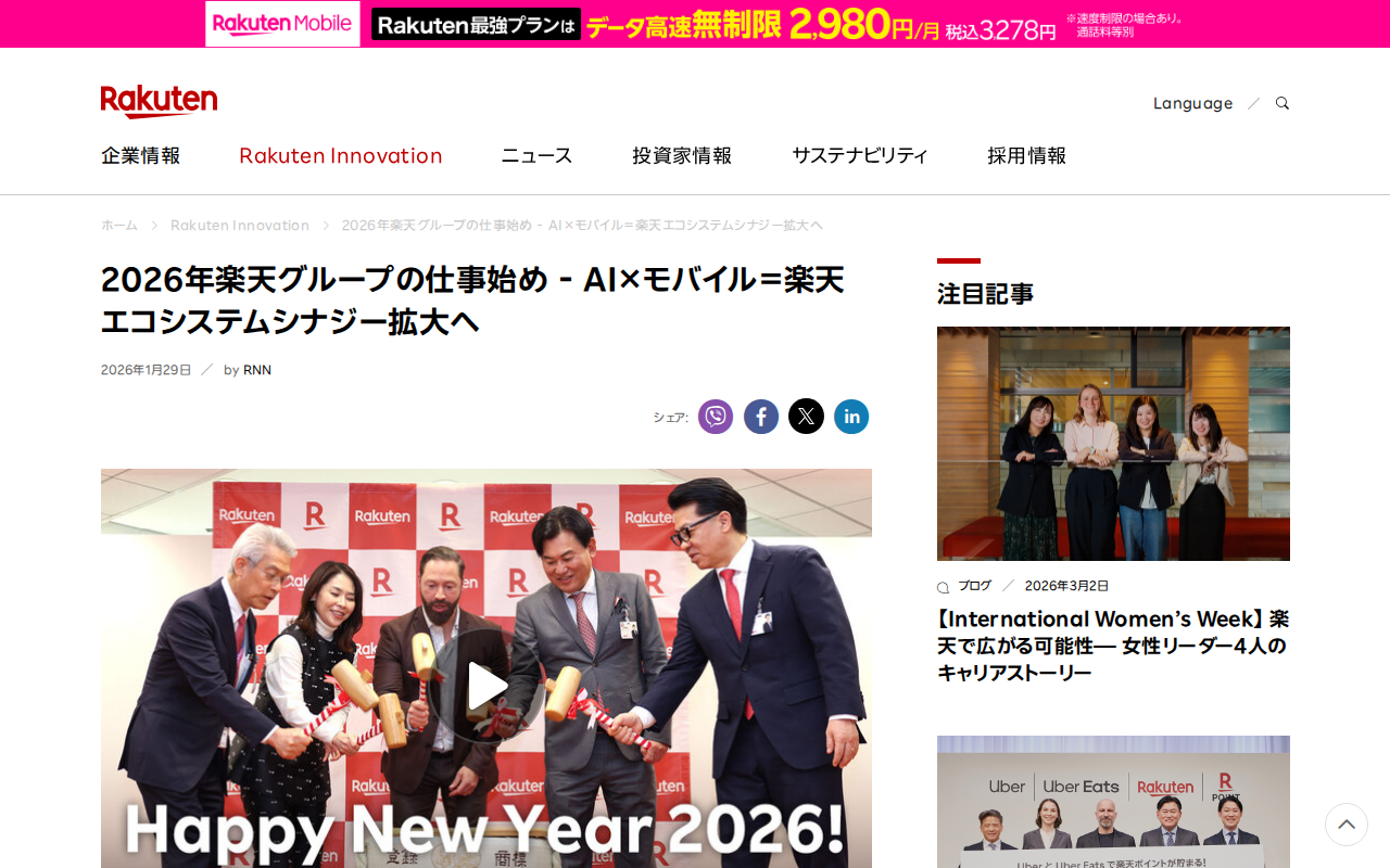 2026年楽天グループの仕事始め ‐ AI×モバイル=楽天エコシステムシナジー拡大へ | 楽天グループ株式会社