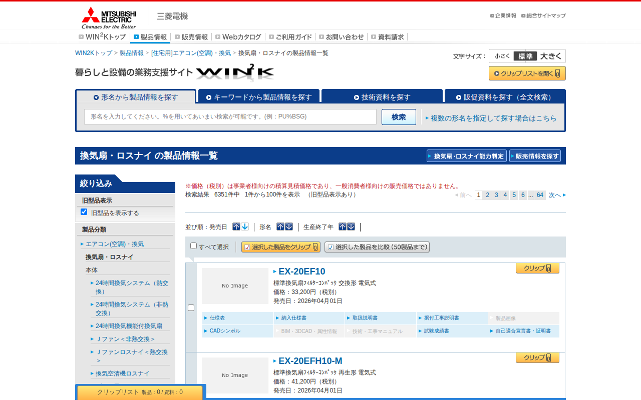 換気扇・ロスナイの製品情報一覧|三菱電機WIN2K