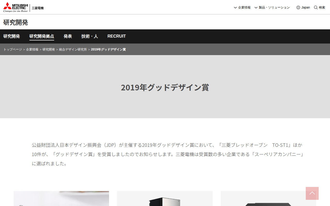 2019年グッドデザイン賞 | 統合デザイン研究所 | 研究開発 | 企業情報 | 三菱電機