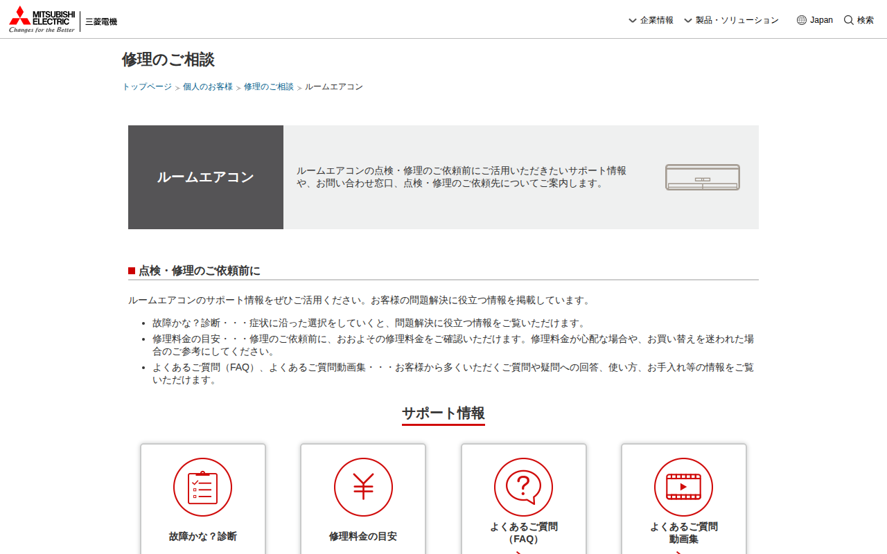 三菱電機 修理のご相談 ルームエアコン