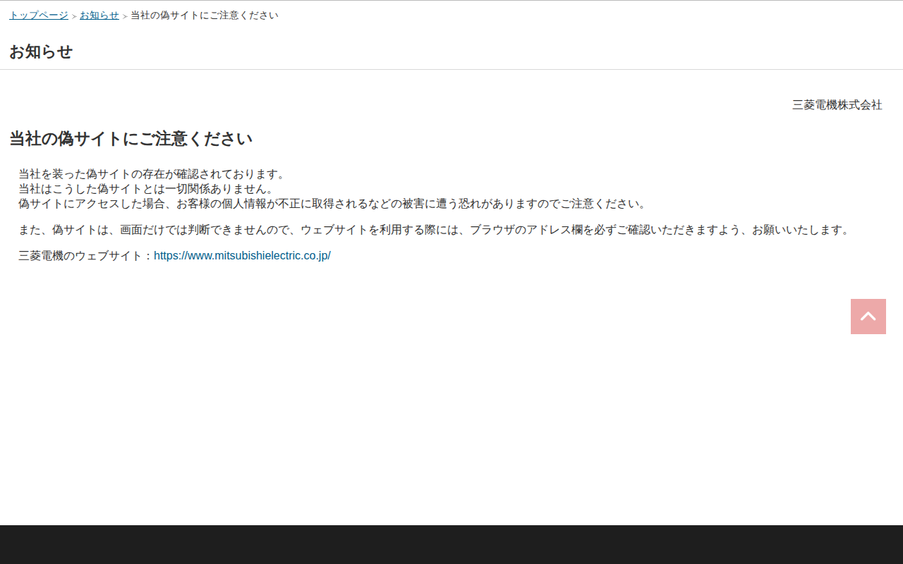 三菱電機:当社の偽サイトにご注意ください