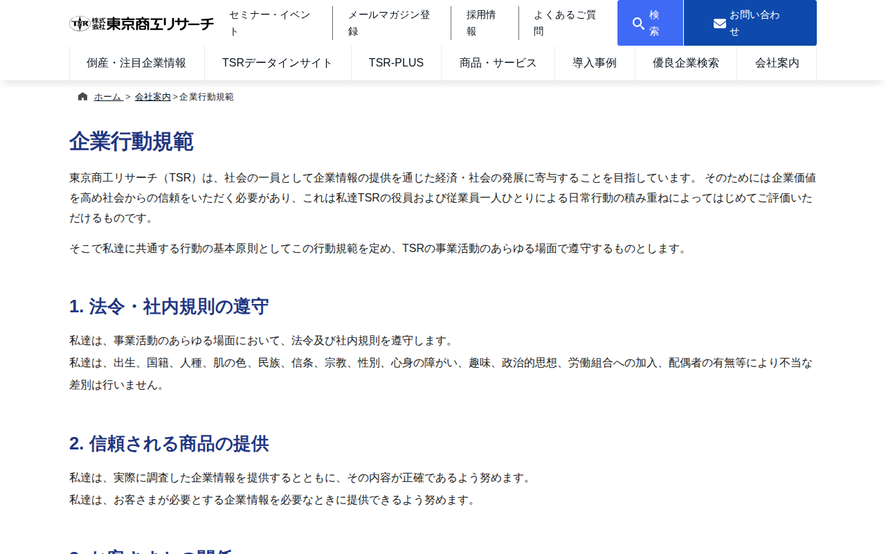 企業行動規範 | 会社案内 | 東京商工リサーチ