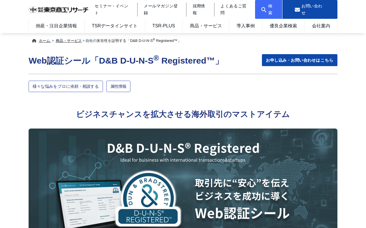 自社の実在性を証明する「D&B D-U-N-S<sup>®</sup> Registered™」 | 東京商工リサーチ