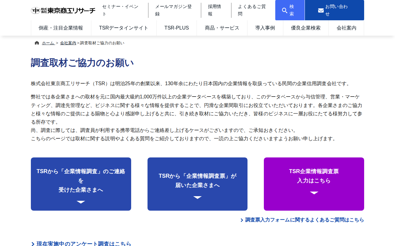 調査取材ご協力のお願い | 会社案内 | 東京商工リサーチ