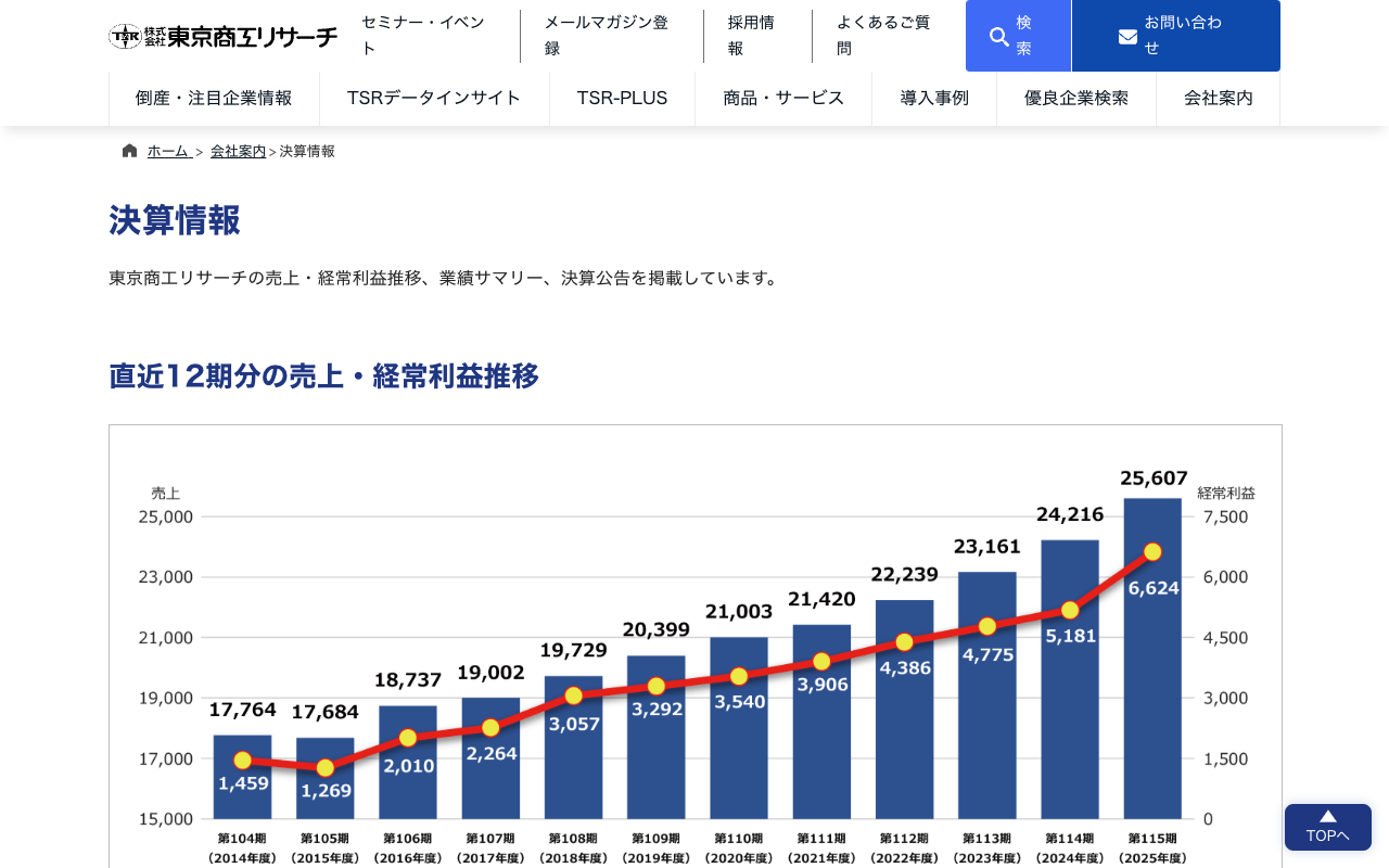決算情報 | 会社案内 | 東京商工リサーチ