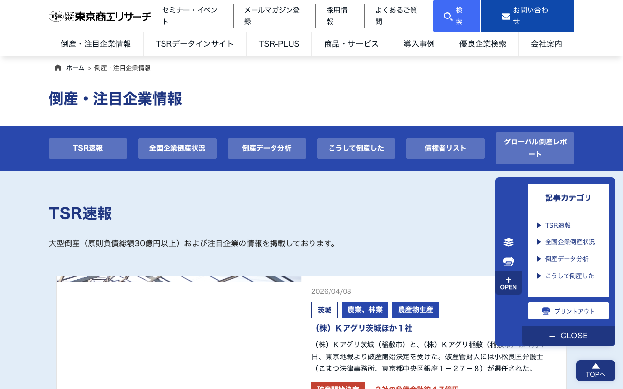 www.tsr-net.co.jp/newsのウェブアーカイブ(魚拓)です。 元のページが削除されても、保存されたスクリーンショットとHTMLで内容を確認できます。